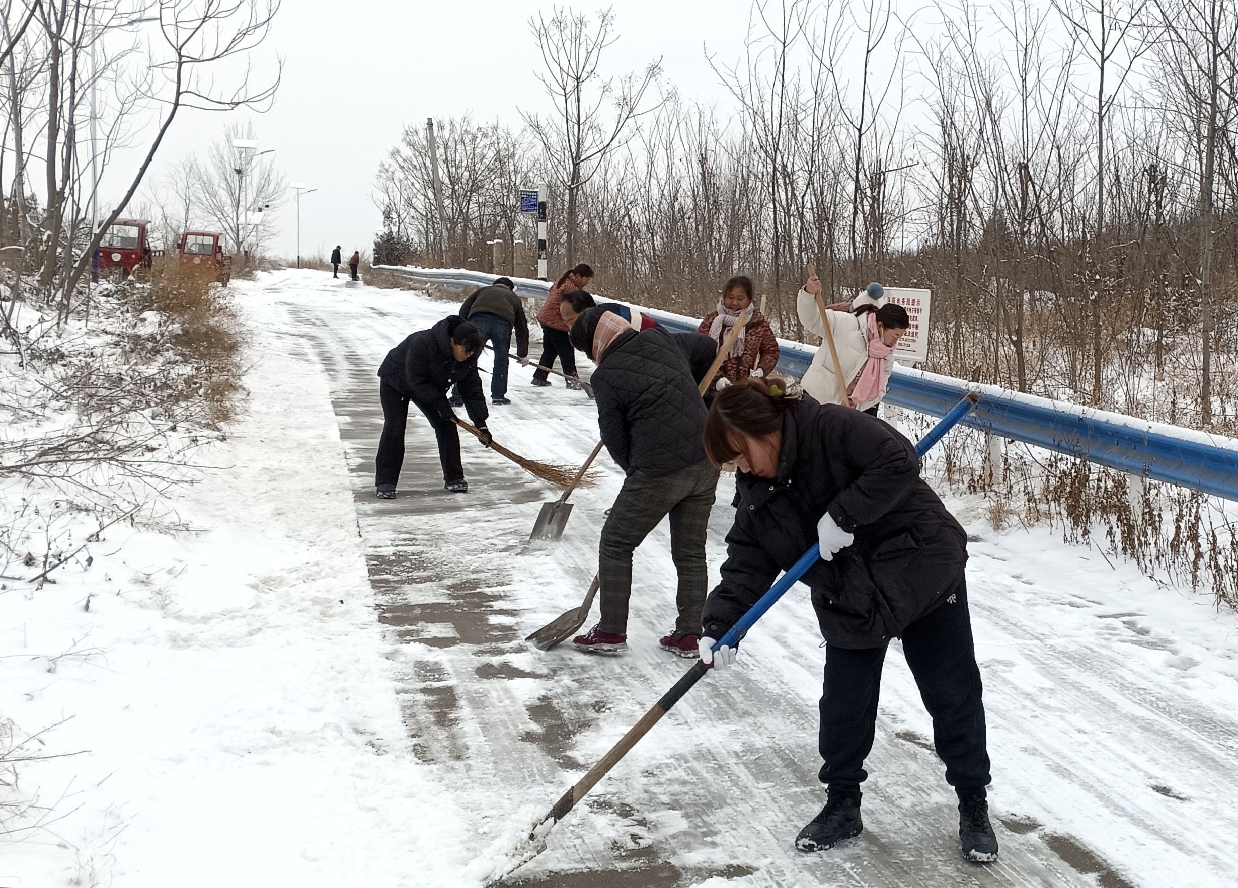 1月20日,寒潮攜降雪席卷陽店鎮(zhèn),道路積雪結(jié)冰給群眾出行帶來極大安全隱患。為保障轄區(qū)道路暢通與群眾出行安全,三門峽市城鄉(xiāng)一體化示范區(qū)(高新區(qū))陽店鎮(zhèn)迅速啟動(dòng)應(yīng)急響應(yīng),組織鎮(zhèn)機(jī)關(guān)干部、村組干部及鎮(zhèn)直鎮(zhèn)辦工作人員,全面開展“同心除雪,共筑平安路”專項(xiàng)行動(dòng),以高效舉措和務(wù)實(shí)作風(fēng)筑牢民生安全防線。 雪情就是命令,責(zé)任彰顯擔(dān)當(dāng)。鎮(zhèn)黨委書記孫強(qiáng)帶頭沖鋒在前,帶領(lǐng)機(jī)關(guān)干部職工攜帶鐵鍬、掃帚、鏟雪板等工具,奔赴鎮(zhèn)區(qū)主干道、十字路口等重點(diǎn)路段,投入到緊張的除雪工作中。凜冽的寒風(fēng)中,大家不畏嚴(yán)寒、干勁十足,揮動(dòng)著手中的工具鏟冰除雪,分工協(xié)作、配合默契,構(gòu)成了一幅熱火朝天的除雪畫卷。 在鎮(zhèn)黨委的號召下,各村黨支部迅速響應(yīng),村支部書記帶領(lǐng)村“兩委”干部、黨員志愿者及熱心群眾,對村內(nèi)主干道、背街小巷、橋梁坡道等易結(jié)冰路段進(jìn)行集中清理。黨員干部沖鋒在前,群眾們踴躍參與,大家齊心協(xié)力將道路上的積雪和冰層逐一清除,用實(shí)際行動(dòng)踐行“我為群眾辦實(shí)事”的初心使命。 經(jīng)過數(shù)小時(shí)的奮戰(zhàn),轄區(qū)內(nèi)各主要道路、村口路段的積雪基本清理完畢,為群眾鋪就了一條安全暢通的“暖心路”。過往群眾紛紛為干部群眾齊心除雪的舉動(dòng)點(diǎn)贊,冬日的寒意被干群同心的暖流驅(qū)散。 此次除雪保暢行動(dòng),不僅保障了群眾的出行安全,更彰顯了陽店鎮(zhèn)黨員干部的責(zé)任與擔(dān)當(dāng),拉近了黨群干群關(guān)系。下一步,陽店鎮(zhèn)將持續(xù)關(guān)注天氣變化,完善應(yīng)急處置預(yù)案,以更扎實(shí)的舉措守護(hù)轄區(qū)群眾的生命財(cái)產(chǎn)安全,用實(shí)干與擔(dān)當(dāng)筑牢平安防線。(彭紅勇) ( 編輯:tln ) |