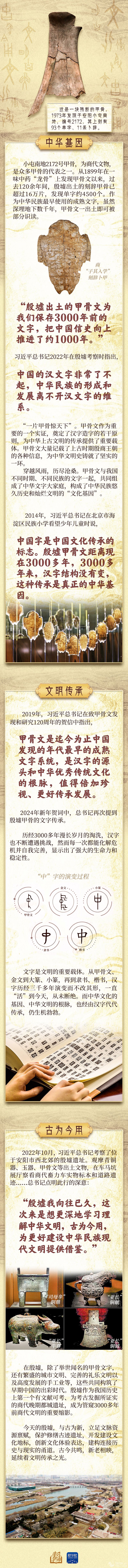 泱泱中華,歷史悠久,文明博大 對(duì)于探尋中華文明基因密碼 守護(hù)中華民族文化根脈 習(xí)近平總書記始終飽含深情、念茲在茲 “學(xué)習(xí)新語”欄目推出中華文明系列報(bào)道 本期走進(jìn)河南安陽殷墟 從龜甲獸骨中 探尋字里行間的中華基因