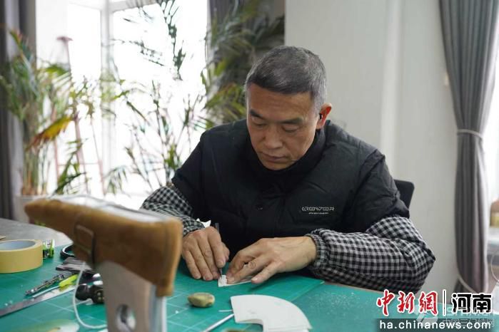 圖為裕雯鞋樣設(shè)計(jì)工作室創(chuàng)始人馬育文展示鞋樣。趙夢陽 攝