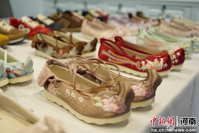 圖為裕雯鞋樣設(shè)計(jì)工作室的漢服繡花鞋展品。連晨宇 攝